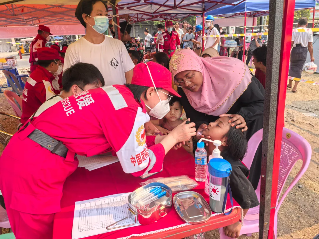地震造成曼德勒、内比都等地区建筑严重受损,断水断电,加上近40度的酷热天气和蚊虫叮咬,给受灾民众生活带来严峻困难。中国政府、机构和企业第一时间伸出援手,加紧推进灾后安置、赈济、供水和卫生防疫等工作。3日,中国国际救援队医疗分队在曼德勒敏格拉市场附近的安置点为受灾民众提供问诊、检查、清创等简单医疗服务。