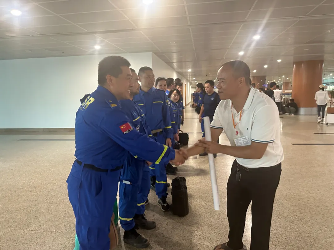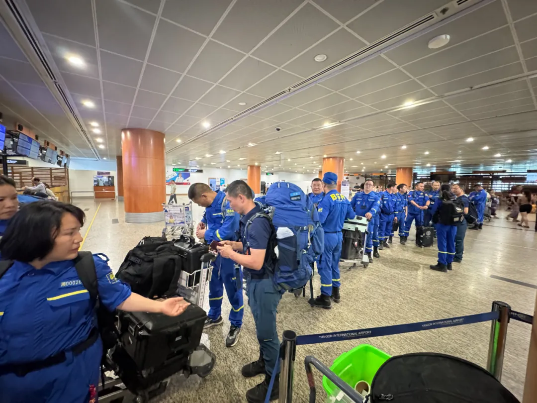 就在这时,缅甸中华总商会的工作人员如同亲人一般出现在他们面前。在仰光国际机场,商会工作人员早早地就等候在那里,他们热情地迎接救援队,帮忙办理落地签手续,协调人员、装备等入境快速通关。每一个环节都安排得井井有条,每一个细节都考虑得十分周到。在商会工作人员的帮助下,救援队顺利入境,并迅速登上了前往灾区的交通工具。那一刻,救援队队员们的心中充满了感动,他们知道,自己不是一个人在战斗,背后有缅甸中华总商会这个强大的后盾。