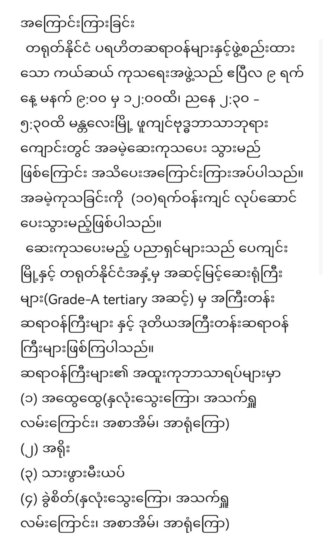 致同胞们:中国志愿医生救援队在曼德勒开启义诊服务!地点如下!