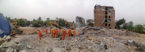 4月10日,缅甸国家管理委员会主席敏昂莱大将在掸邦(南部)东枝(တောင်ကြီး)市政厅及勃欧民族自治区和榜市(ဟိုပုံး)会议厅召开的灾后工作会议上表示:"此次地震暴露出我们在建筑质量监管方面存在的不足。 初步调查结果表明,多数损毁建筑存在施工质量不达标、未严格遵循建筑规范等问题。