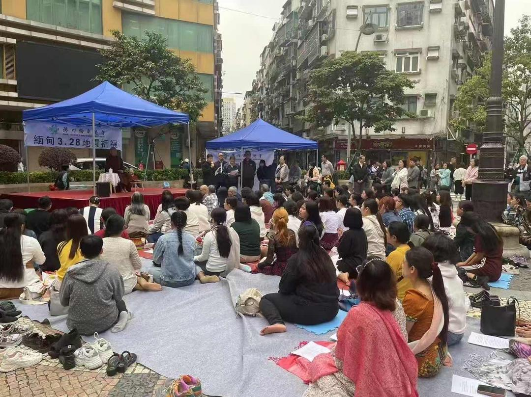 【《大灣區時報》澳門訊】澳門緬華總會今日(6日)下午三時在三盞燈圓形地舉行“澳緬同心·心手相連——為緬甸3.28地震祈福”活動,多名居澳緬甸華僑及在澳工作的緬甸外僱等參與,並於活動前為強震中所有遇難者默哀一分鐘。