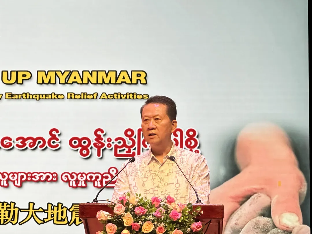 联合举办单位代表缅甸中华总商会会长林文猛先生随后发表讲话,“今天,我们怀着无比沉重的心情聚集在这里,共同为3月28日曼德勒大地震的灾区人民祈福,并凝聚力量呼吁关注支援灾区重建。灾难终将过去,但爱心永不停息。今天的赈灾活动不仅是援助行动的延续,更是对生命尊严的守护、对人性光辉的彰显。灾难无情,人间有爱。我们深知,每一份善举、每一分善款物资、每一双伸出的援手,都是对灾区人民最温暖的支撑!”