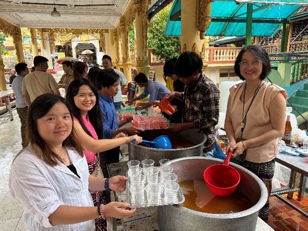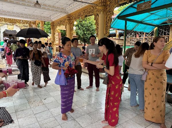 2025年4月17日(缅历新年第一天)下午3:00,缅甸华侨中学校友会(华友)在吉格山塔举行暖心布施活动,向来礼佛的善男信女送饮橙汁1500杯,以传统善行迎接新年,传递温暖与祝福。