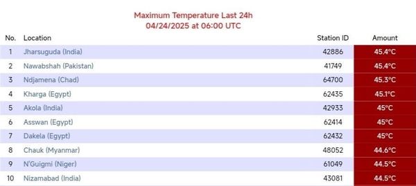 此前, 3月17日至19日,该镇曾连续三天占据全球高温榜第二位;而2024年4月23日、28日和29日更一度登顶榜首。