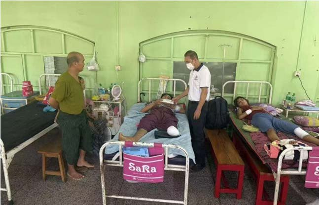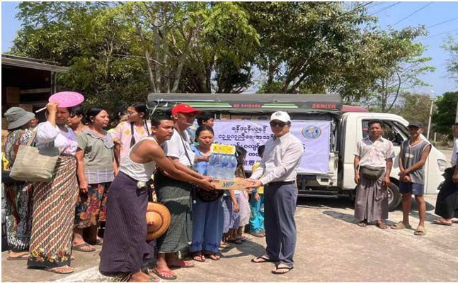 (医疗物资、面包、饼干、方便面、矿泉水、矿盐冲剂等10余种),满载中型小货车5台,前往内比都展开救援工作,向当地受灾的政府单位家属及民众,发放赈灾物资,将爱心真真切切地送到灾民手中,温暖灾区民众的心,帮助灾民度过难关。