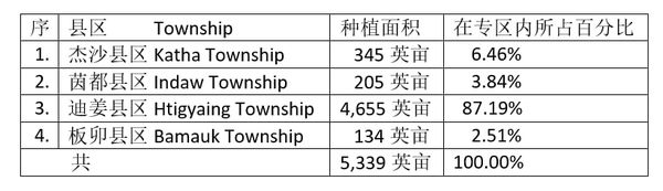 四个县区中,以迪姜县区的大豆种植面积为最多,几乎占了全专区大豆种植面积的近9成比例。之前也有媒体报导过这迪姜县区大豆种植情况(见《缅华网》1月21日“缅甸新闻”栏目中的有关报导),缅甸国内大豆主要在掸邦地区种植,迪姜县区可以说是实皆省区内种植大豆最多的县区了。