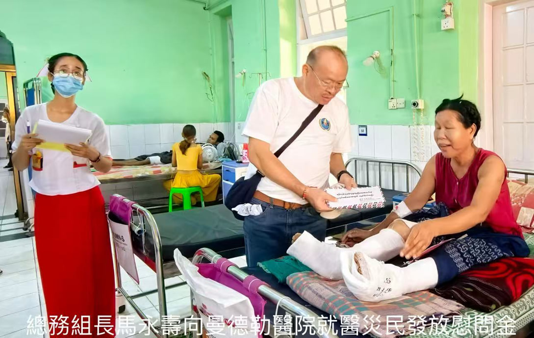 仰光云南会馆本着「同舟共济 守望相助」的精神,并于2025年4月25日组成慰问团前往曼德勒灾区,当天上午并对当地受灾侨团社团、寺院庙宇、医院、受伤灾民及乡亲等进行实地探访慰问与捐赠和援助。