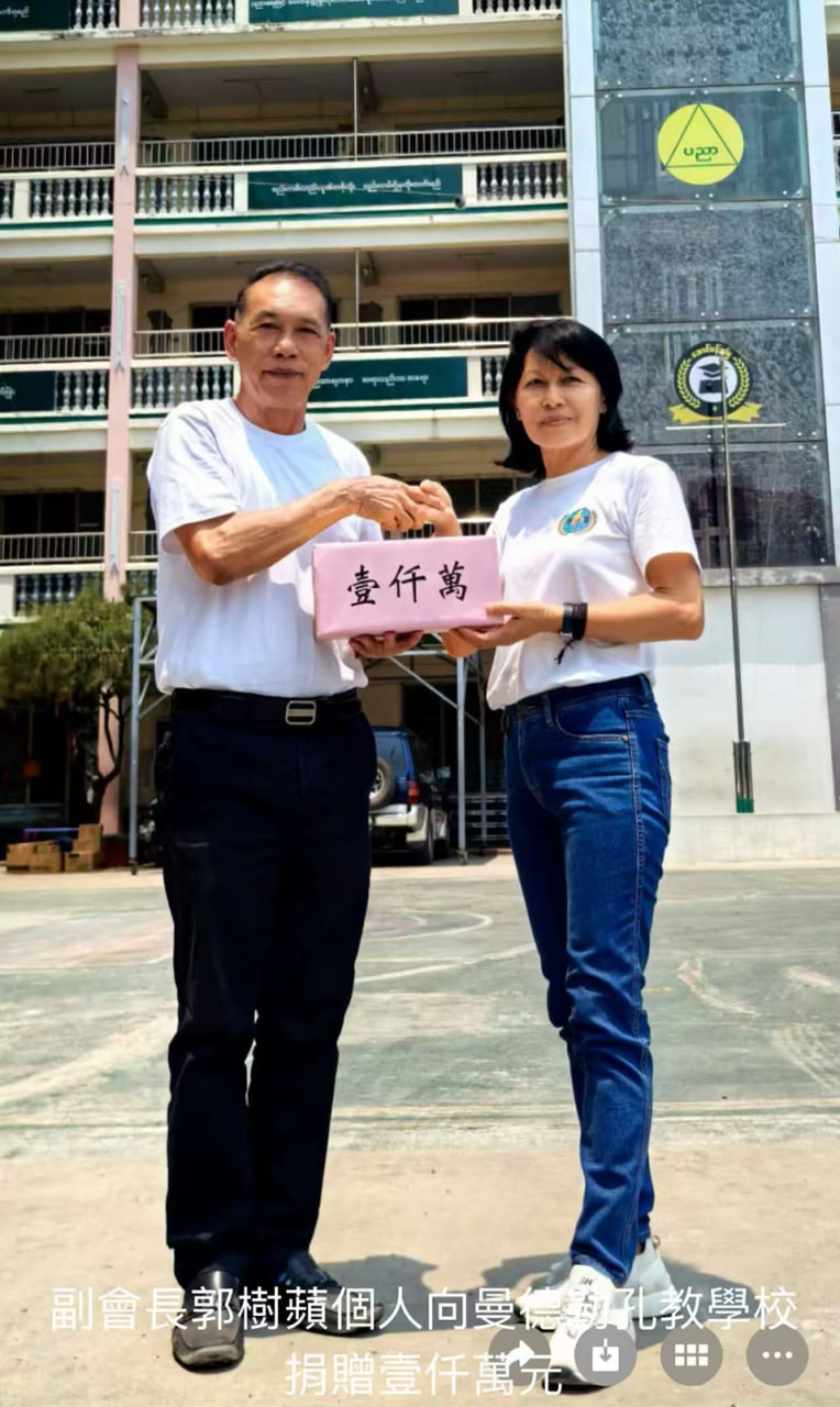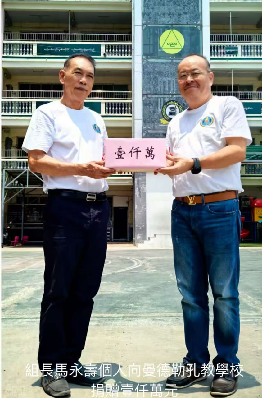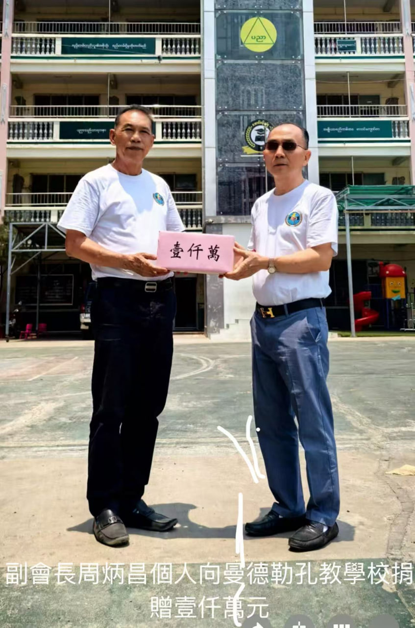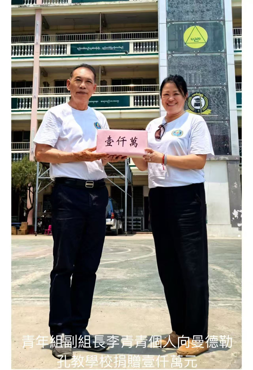 同时在探访慰问曼德勒孔教学校时由本会副会长周炳昌、郭树苹、组长马永寿、青年组副组长李青青分别以个人之名誉向曼德勒孔教学校捐款。