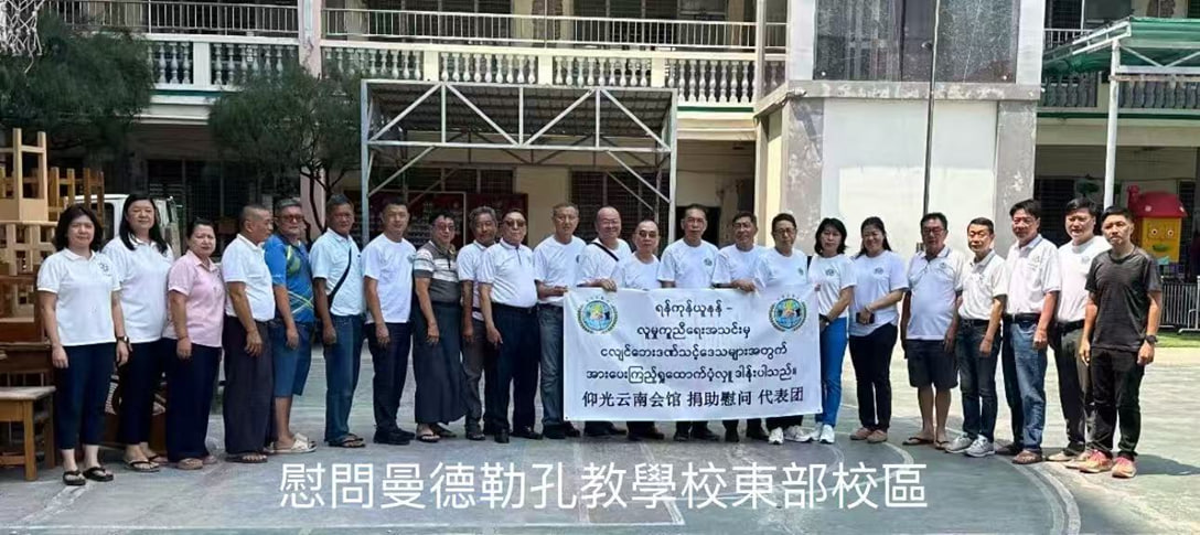 2025年4月25日下午仰光云南会馆赈灾慰问团重点实地探访和慰问曼德勒孔教学校东部、南部、北部三大校区,并向在大地震中受损最严重的北部校区捐赠重建教学大楼基金。在慰问团探访期间得到孔教学校董事会、学校相关负责人热情接待。