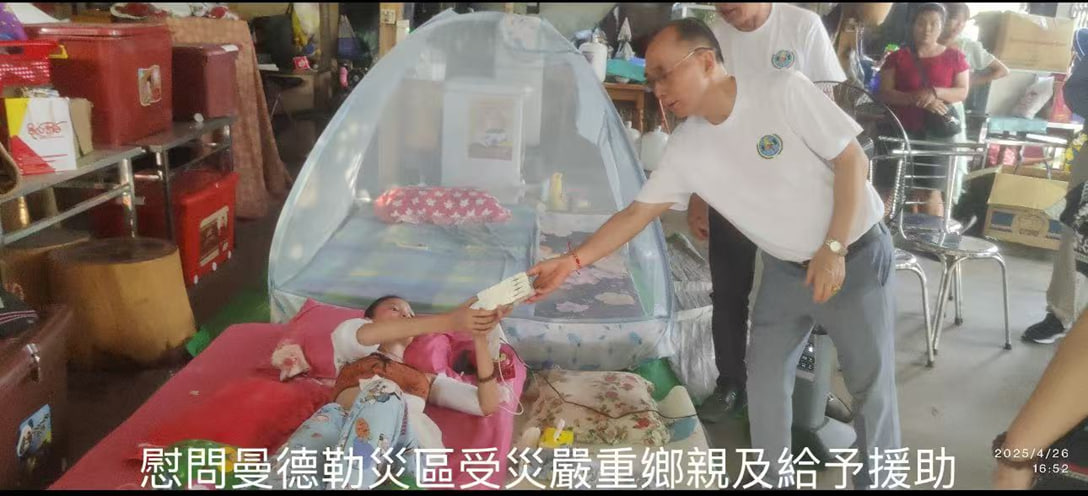 2025年4月26日下午仰光云南会馆赈灾慰问团最后重点实地探访曼德勒福庆孔子课堂、曼德勒明德学校及曼德勒云南同乡会。同时前往看望在大地震中受伤之贫困乡亲,并给予衷心的祝福和给予资助……