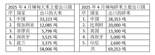 在现新财政年度的第1个月,2025年4月份,缅甸已向国外出口了大米碎米近15万吨,这是由缅甸大米总会方面获知讯息。