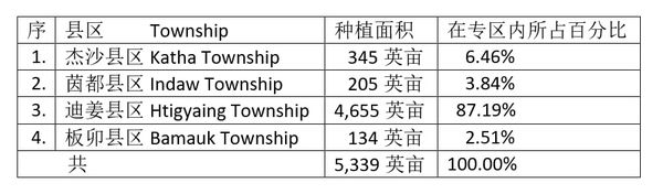 四个县区中,以迪姜县区的大豆种植面积为最多,几乎占了全专区大豆种植面积的近9成比例。之前也有媒体报导过这迪姜县区大豆种植情况(见《缅华网》4月28日“缅甸新闻”栏目中的有关报导)。大豆在全球范围内是属于十大粮食作物之一,但在缅甸国内大豆主要种植地区为掸邦、克钦邦及实皆省等地区,迪姜县区可以说是实皆省区内种植大豆最多的县区了。