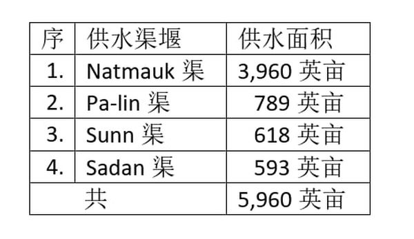 在现2025年度内,谬地县区方面为了让种植夏季稻的农民们能获得充足的农业用水,县渠堰暨水资源管理局方面将通过有关渠堰为稻田通过水源。将为这些稻田通过水源的渠堰如下表: