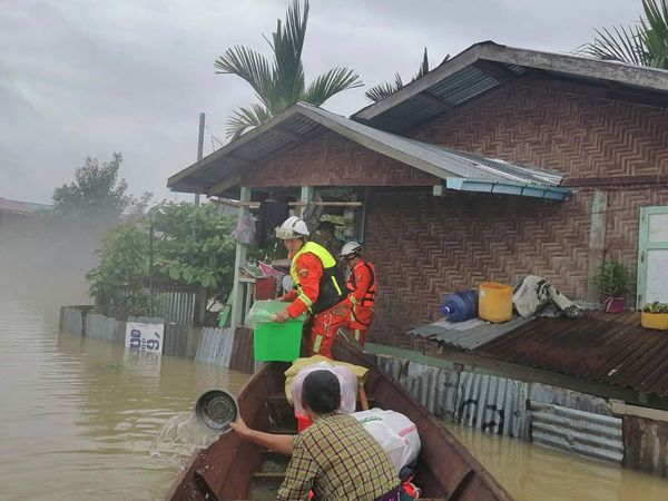 受持续强降雨影响,伊洛瓦底江水位持续上升,导致克钦邦密支那市(မြစ်ကြီးနား)低洼地区发生严重洪涝灾害。