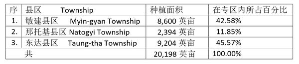 现财政年度冬作物季节时期敏建专区内各县区内的洋葱种植面积如下:
