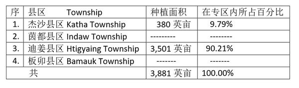 杰沙专区内四个县区内完成的这利玛豆种植面积如下表: