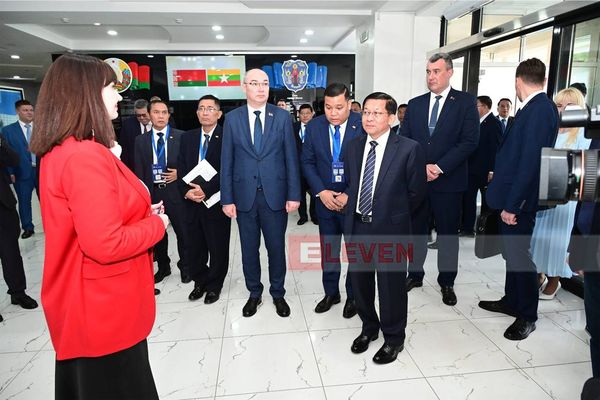 在参观结束后,敏昂莱大将与白俄罗斯卫生部长等官员在药厂会议厅举行工作会谈。双方就深化两国卫生领域合作、推动白俄罗斯产药品及医疗器械在缅甸医疗体系中的应用,以及后续技术对接等议题进行了深入交流。