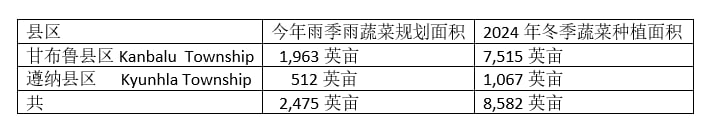 专区内的甘布鲁县区及遵纳(Kyun-hla)县区,在现在雨作物种植季节期间,规划种植2,475英亩雨蔬菜,当地农民们自今年5月第三周开始就已在种植这些雨蔬菜了。