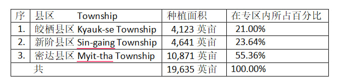 按:之前媒体上也报导过皎栖县区雨前绿豆种植情况(见《缅华网》5月31日“缅甸经济”栏目中的有关报导),当时说皎栖县区种植了这雨前绿豆3,296英亩,与现在所说的 4,123英亩有一些出入,这可能是当时种植工作还未全面完成而产生的的差距。