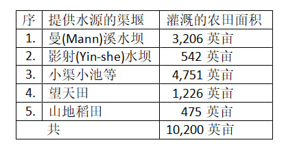 种植此雨季稻时,各渠堰所提供水源的稻田面积如下: