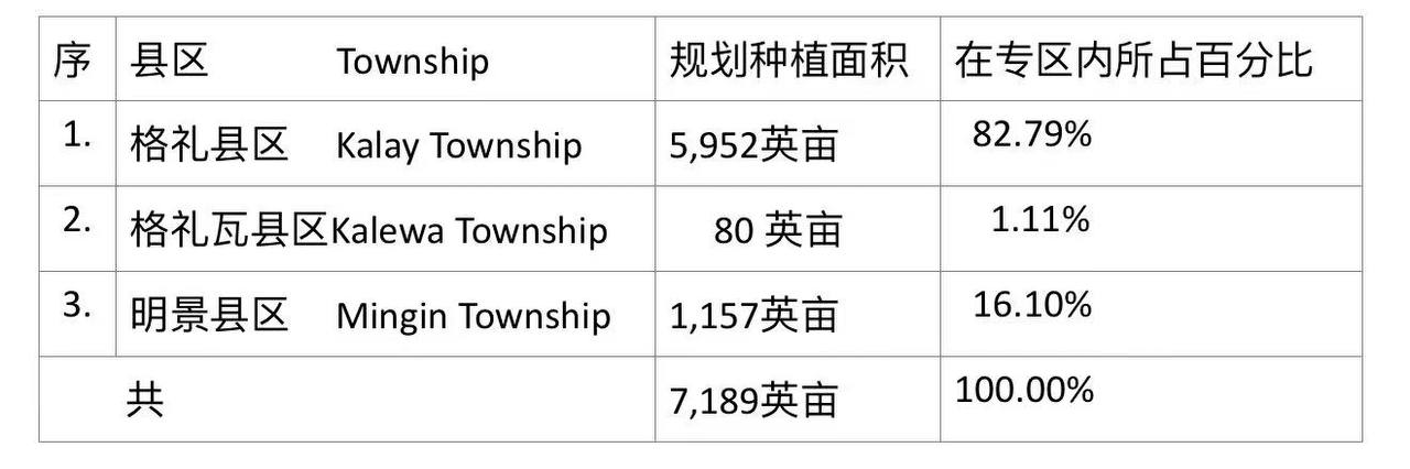 三个县区中,以格礼县区规划种植面积为最多,占了全专区规划种植面积的五分之四以上的比例。