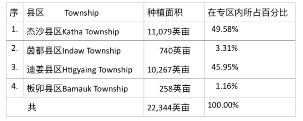 按:实皆省的杰沙专区也是主要稻谷种植地区之一,迪姜县区作物该专区内的一农业县,稻谷种植面积虽然不如下缅甸地区那样多,但也有一定的规模。