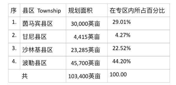 茵马宾专区内4个县区—茵马宾县区、甘尼(Kani)县区、沙林基(Sa-lin-gyi)县区及波勒(Pale)县区今年所规划种植的雨季稻面如下表: