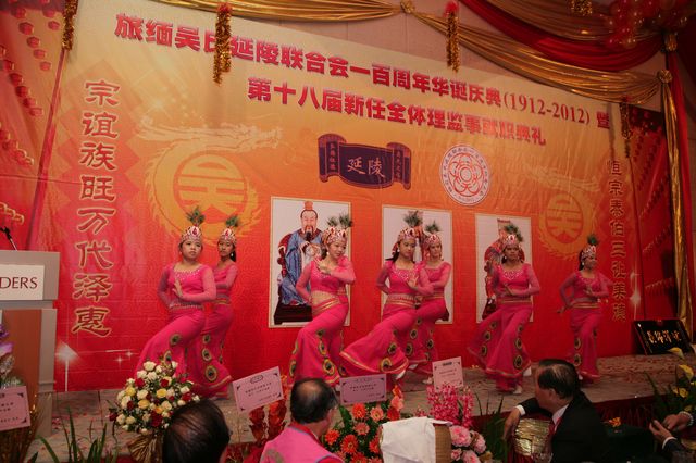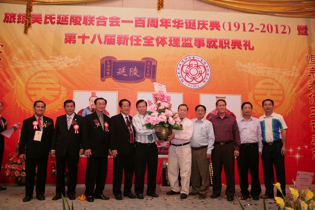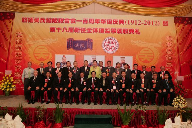 仰光吴氏延陵联合会于2012年1月9日举行成立一百周年盛大庆典。上午8:30时,在其会所举行祭祖仪式,来自世界各地一百多名吴氏宗亲和仰光延陵联合会的全体理监事出席了典礼,巨轮社铜乐队临场奏乐祝贺,到场祝贺的尚有2011年春节杯得奖的舞龙队、舞狮队,场面非常热闹。