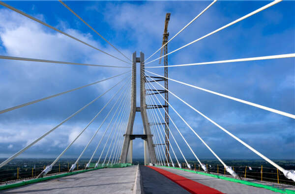 作为缅甸境内跨度最大的双塔双索面预应力斜拉桥,达拉大桥主桥跨径达370米,边跨跨径160米-1。主体结构的贯通标志着项目建设正式转入附属结构施工和收尾阶段,为今年底完工交付奠定了坚实基础。