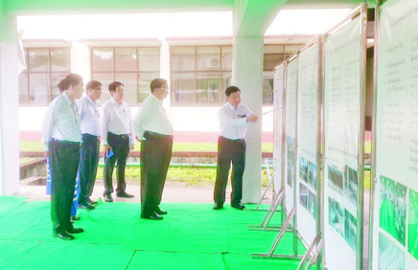 10月10日下午,工业部联邦部长查理丹(ချာလီသန်း)与相关负责人一同前往茵盛镇区的药品厂(茵盛),视察了静脉输液生产的各道工序。