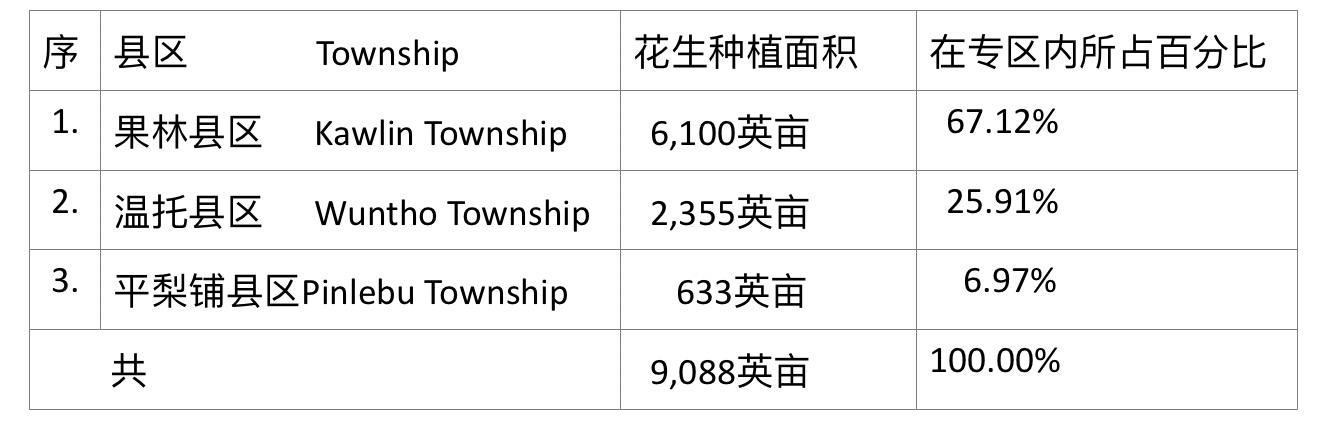 在果林专区内,种植1英亩花生需1.5缅箩种籽,而包括种籽费、人工费、肥料费及农药费等在内,每英亩花生种植费用超过20万缅元,而花生每英亩产量在50缅箩以上。