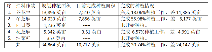 实皆省遵纳县区冬季期规划种植3万多英亩油料作物已种1万英亩