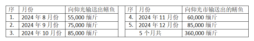 2024年最后5个月博加礼县区每个月向仰光大都市输送出的鳝鱼如下: