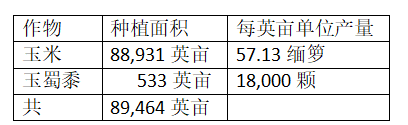 在现2025—26财政年度雨作物种植季期间,布鲁县区方面种植了雨玉米玉蜀黍共89,564英亩,当地农民们自8月开始有关采收工作,现在已百分之百完成了这些玉米玉蜀黍的出售工作,各种作物的种植面积及单位产量如下表: