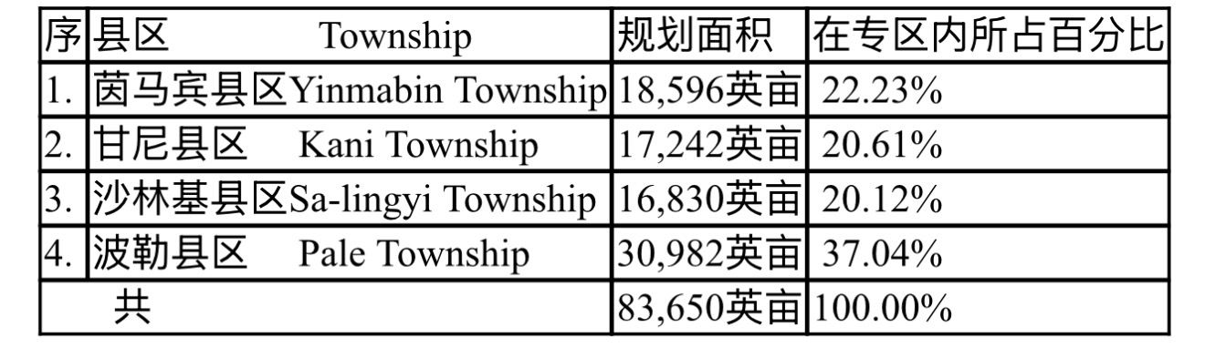 专区内的四个县区中,以波勒县区规划种植的面积为最多,占全专区规划种植面积的三分之一以上的比例,其他三个县区规划种植面积相差不远,都在全专区的四分之一一下。