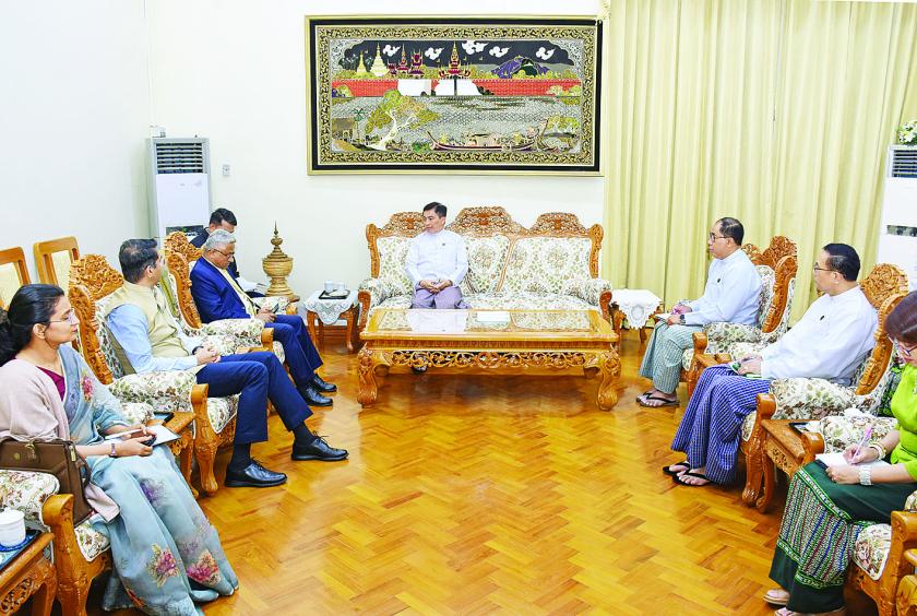 1月20日,经贸部部长吴钦穗(ဦးချစ်ဆွေ)在內比都第(3)办公室会客厅接见了印度驻缅大使H.E. Mr. Abhay Thakur及印度商工部商务司副司长Sh. Nitin Kumar Yadav率领的代表团。该代表团此行旨在参加第九届缅印贸易联合委员会会议,双方在会面中就多项议题交换了意见。