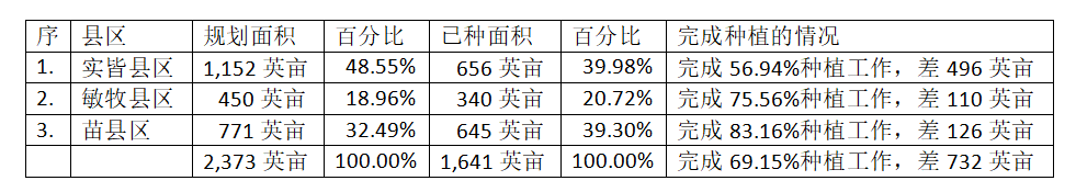 专区内各县区规划种植的辣椒面积及目前完成的种植面积如下表: