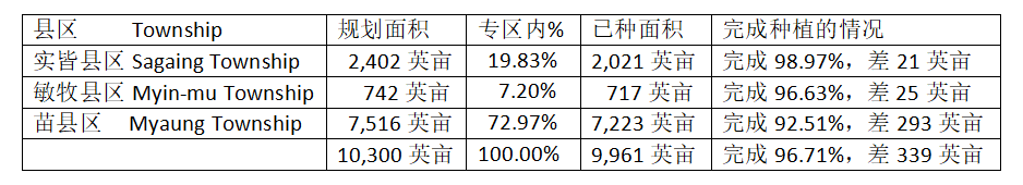 3个县区中,以苗县区规划种植面积为最多,其规划种植面积占全专区规划种植面积7成以上的比例。其次为实皆县区,该县区规划种植占全专区规划种植面积的近五分之一的比例。