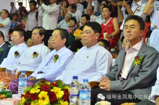缅甸体育部长吴丁山、中国驻缅甸大使杨厚兰等缅中两国官员,缅甸华商商会会长吴继垣等商会成员,缅中各界篮球爱好者齐聚现场,一睹缅中篮球选手的风采,见证又一次友谊之赛的开幕。