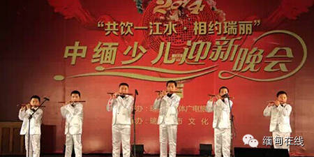 “共饮一江水·相约瑞丽”中缅少儿迎新晚会以音乐舞蹈及乐器演奏、话剧诗歌朗诵等形式展现。爱乐琴行、校外活动中心、银山文艺学校、鹏成心艺幼儿园、LT舞蹈工作室、金话筒培训部、理正双语幼儿园七家单位不同年龄段的中缅少儿欢聚一堂,敞开心扉,载歌载舞,释放激情,表演了《冬天里的一把火》、《美丽的大草原》、《竞争》、《飞》等选送节目。其中,笛子合奏节目《扬鞭催马运粮忙》更是集中缅两国少年儿童的才艺于一体,展现了两国少年儿童的精神风貌和默契交流。