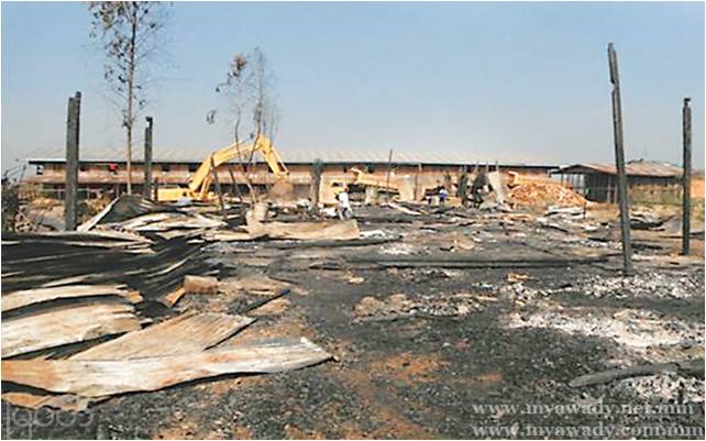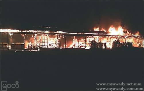 正月31日晚7:45,克钦邦,帕敢市,玛南村附近的玉石山公司办公楼和食堂发生火灾。军方与弄琴村消防队员共同扑灭,晚上10时,火势已被完全控制。经调查知悉,是受到约30多人以易燃物品点火攻击,随后逃逸。公司员工貌昂觉吞和貌耶敏乃受轻伤,已经送往帕敢市医院治疗,公司损失约5000万缅币。