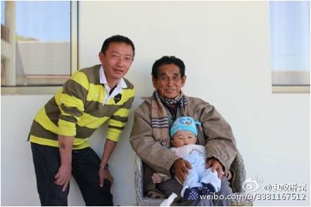 彭家声抱着2013年出生的小儿子接受中国记者采访