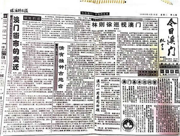 林清风与珠海特区报《今日澳门》专版(牧文)
