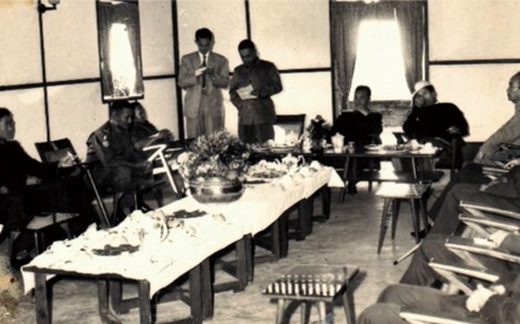 1961年1月29日,缅甸军方代表在欢迎以鲁挺团长为首的中国体育代表团访问勃生时致辞,现场翻译由曾福才老师负责。