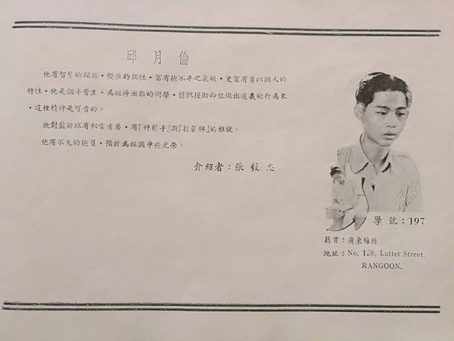 缅甸华侨约叁拾万,学童为数众多,缅属各坡小学林立,而中学则不多,致使高小毕业学生有升学无门之叹。本坡侨领丘公瑞轩有鉴及此,倡办本校,遂于一九二零年初,邀集教育总会正副会长杨子贞,张永福,曾上苑三先生及本坡热心教育人士等,开会议决倡立本校,并定名曰[旅缅华侨中学校]。首由曾公广庇捐助校址及洋楼一座。计地面积十一英亩零七,合洋楼估价五十一万盾。继由龙山堂认捐常年经费三分之一,以廿年为限。同时由各方劝募,计募得四十余万盾,乃组织校董会,选举丘公瑞轩为正总理,张永福为副总理,兴工建筑新校舍,聘请校长,定期开学。本校即于一九二一年二月十五日诞生,此乃本校成立之经过。本校首任校长为尚中,继之为杨元修,后因环境关系,先后告退。一九二四年丘公瑞轩逝世,补选丘贻厥先生为正总理,张永福先生为副总理。新校舍行见落成,是年春聘请林我将为校长,继续开办,更名曰[缅甸华侨中学校]。未及一年,林校长辞职,以教务主任管震先生为校长,对校务教管俱见认真,大有朝气勃勃,曙光初见之象。惜用费过巨,原有经费除建校舍一十八万余盾外,又购置校具图书仪器等,已告完罄,幸而曾公广庇之哲嗣曾祖概先生出面维持,始免中辍,诚侨教之幸也! 一九三零年因经费无着,校长管震氏去职,校董会开会议决,暂时停办。于是,华侨最高学府遂成荒凉之场所矣! 一九三一年,陈守金先生刱设缅甸华侨初级中学于亚弄,后因经费问题,于次年由亚弄迁入本校,并呈请侨务委员会备案,蒙甚其核准,并发给补助费。陈校长苦心孤诣维持本校,为时五载,其功非浅也! 一九三七年,坡中仝人发起慈善公会,首先以整理仰光各华校为前提,而最高学府之华中,亦认为有接收之必要。因此,慈善公会派龚子宏,吴文举等先生负责接收华中,并改组校董会。龚子宏为正主席,吴文举为财政,聘李简居为校长,周坤元为教务主任,陈鸿为训育主任。一九三九年春,李校长因事请辞,乃聘吴铁民为校长,以陈弥化,黄焕祖分任教务,训育。和衷共济,力矫前弊,并增添学科,以适应国难之需要。而校董会诸先生亦热忱筹款,共辅校政。尤以丘新样先生独资捐赠校墙,龚子宏,曾红奎,吴文举,陈水成,购赠军乐全队,使学校内容稍为充实,外观亦觉整饰,校风为之一振。一九四一年冬,敌寇南进,翌年即进占缅甸。本校实不能于敌人卵翼下幸存,乃宣告停办。迨仰光危急,征借本校囤粮之英军,竟于撤退时纵火焚毁我校,巍峨壮丽之校舍,顿成一片颓垣败瓦,仅存残破钟楼一座,与无顶之广庇楼,风雨飘荡,孑然凄立于九文台江畔……