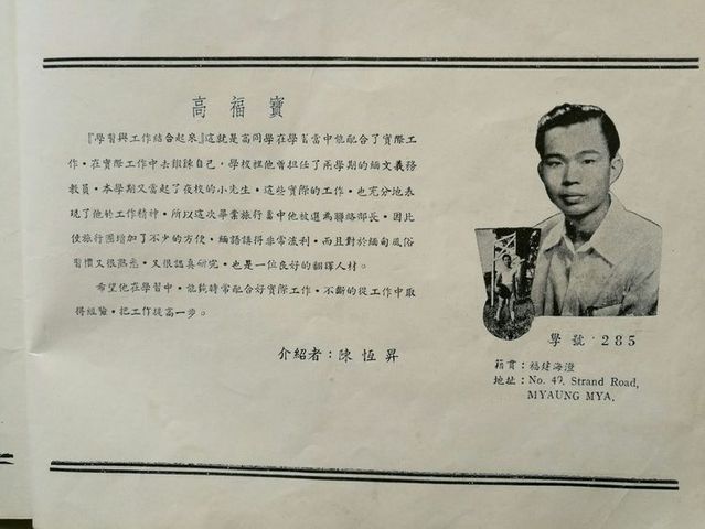珍贵历史资料:缅甸华侨中学复办第四届初中毕业纪念刋(一)