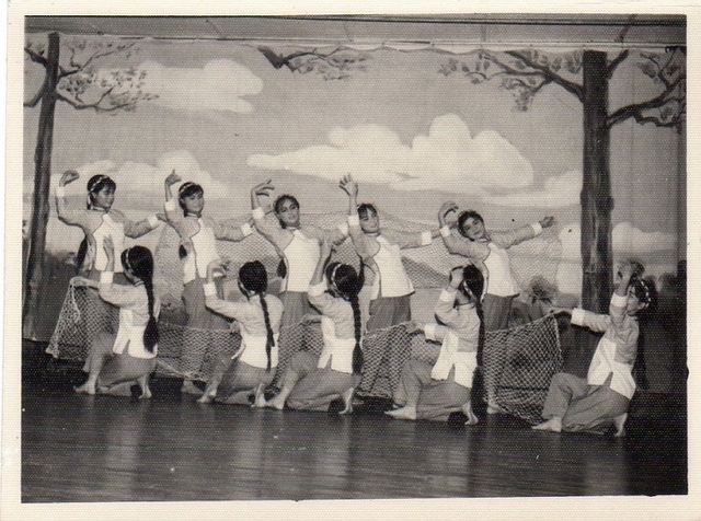 尤其是当“织网姑娘”的节目一开始,就掌声雷动。少战先生和司仪孙荣先生介绍这个节目是在1960年华中师生代表缅甸文化代表团到中国参加演出。所以具有特别的意义。今天当这些演员们上台的一刹那,熟悉的音乐声一响起,虽然我是在台下专心地为她们在拍摄录影,但是我那颗激动的心不禁思潮澎湃,脑海里立刻泛起了四十四年前的一段往事的回忆。那是在一九七一年,我们的团长杨双溪老师,聘请郭缅生老师来伊江合唱团教我们跳“织网姑娘”的舞蹈,因为伊江合唱团为了准备参加庆祝中华人民共和国成立二十二周年国庆节的演出,所以邀请郭缅生老师来教我们这“织网姑娘”的舞蹈。当时我也参加这个节目的演出。在教这个舞蹈之前,郭老师先对我们这十位演员说了一件极不平凡而他终生难忘的事。那是在一九六零年,华中师生代表缅甸文化代表团到中国演出过的“织网姑娘”的节目…….。我听了很激动,下决心要把这个舞蹈练好。当我们在二十二周年国庆节(十月一日)在华商商会大礼堂舞台上演出这个节目时,受到了中国驻缅甸大使馆官员们以及广大华侨的高度赞扬。