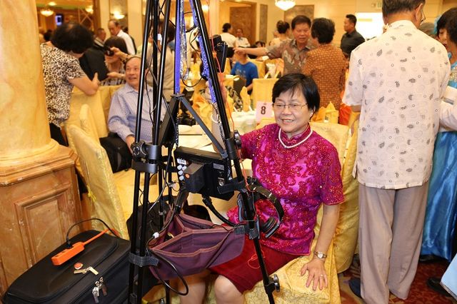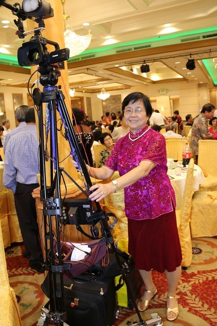 八月十五那天,下午五点钟,我和煜群提早到了“888酒家”,一到那儿,首先映入眼帘的是有许多华中的朋友,演员以及工作人员早在现场忙得不亦乐乎。我们也把录影机架高高架起,选好适当的拍摄角度,把各项预备的工作做好后,再三经过检查,心里才安定下来。今天是个重要的日子,所以要把每个大小细节的镜头都拍摄下来作纪念。我们也真感谢金兰姐给我们安排了最好的位置来拍摄,使我们在拍摄的工作方便了许多。