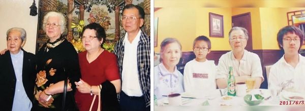 左:梁广荣与姐姐们 右:梁广荣 叶和英与孙子们
