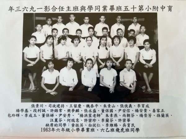 1963 年,育成中学,小学六年级飞虎班毕业生,和班主任杨洪笙老师